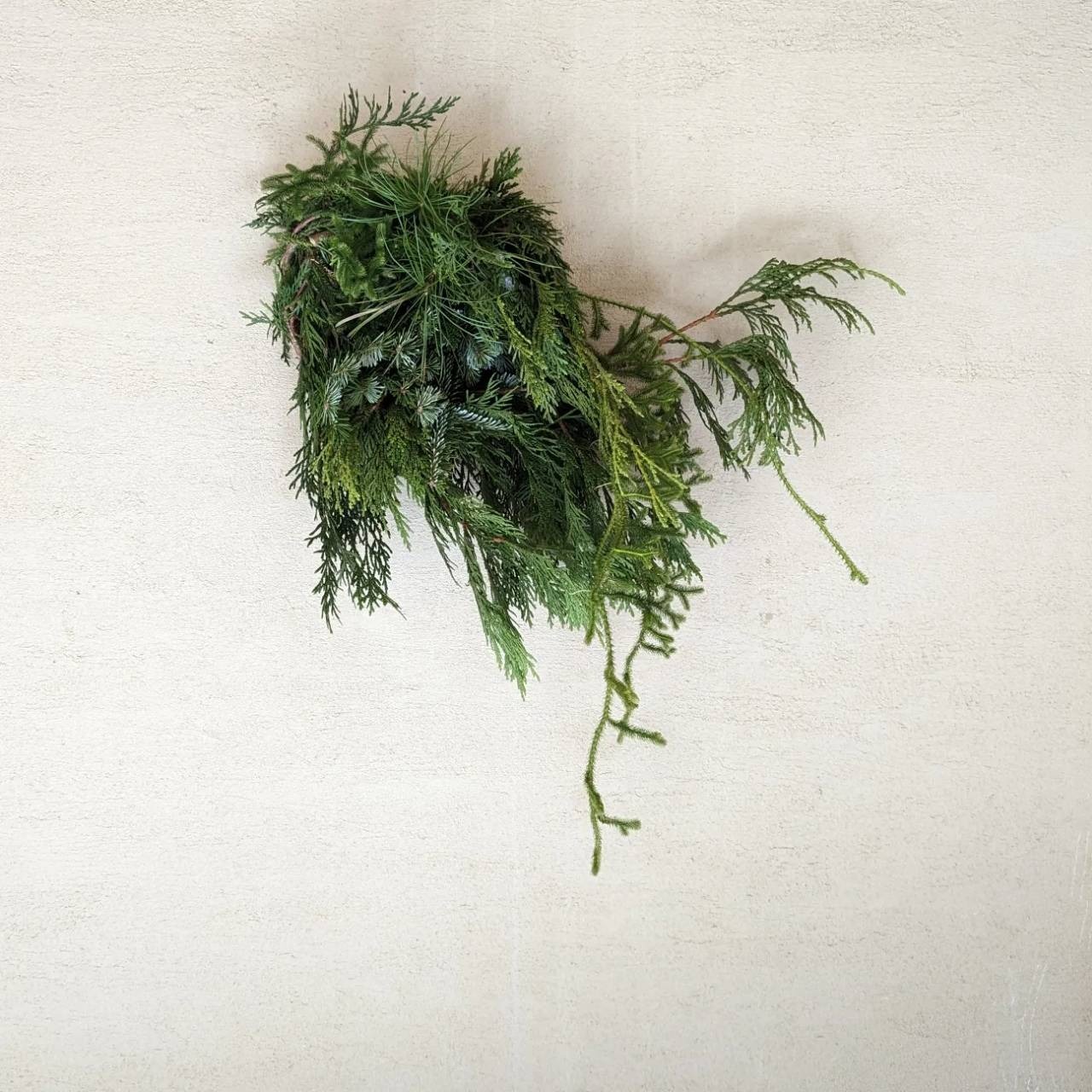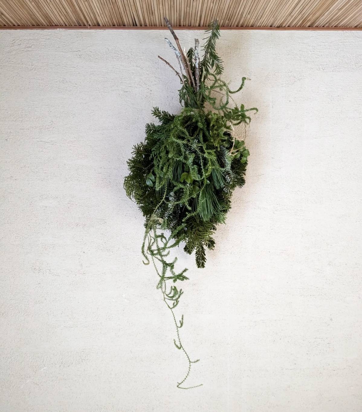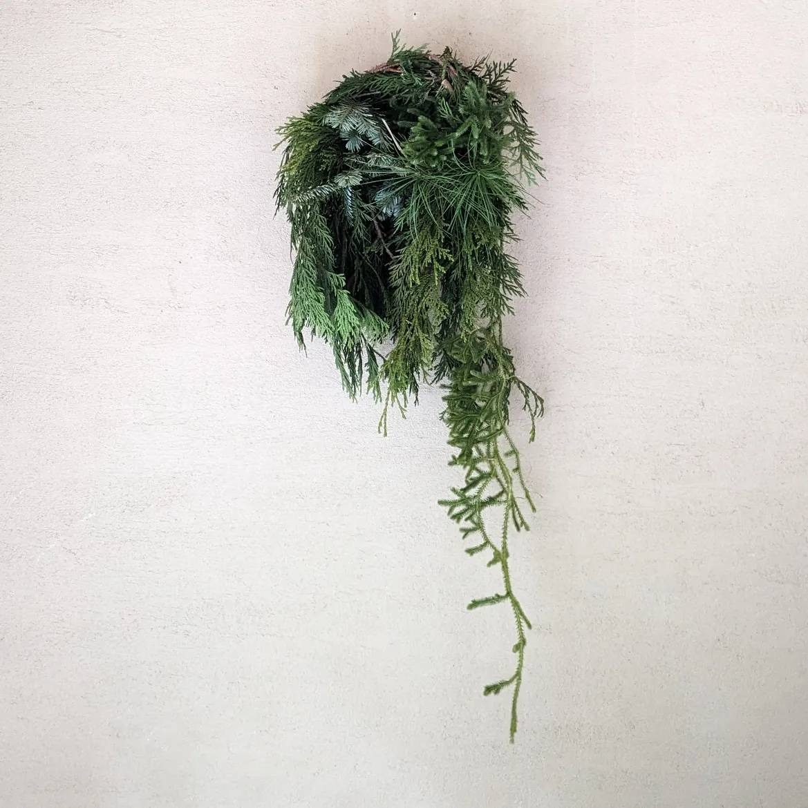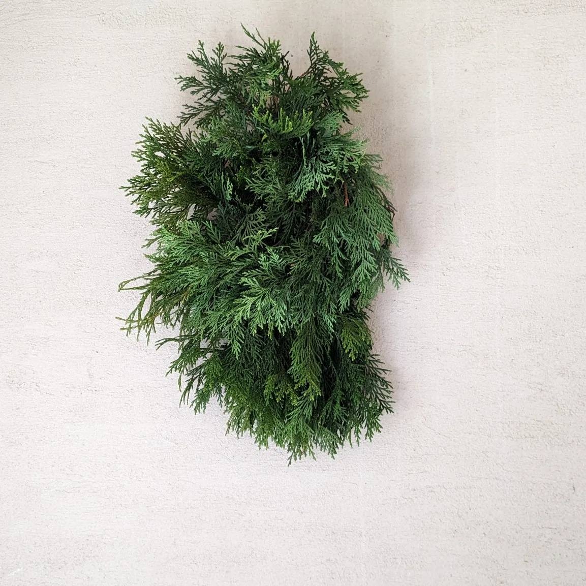シラビソのフレッシュな枝葉を使った作品は、間伐がある秋冬のみ制作しています。